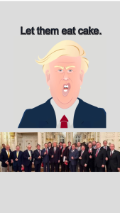 I tried to marry Trump’s years ago quote about beautiful chocolate cake with the “Let Them Eat Cake” thing.  Not sure it landed well, but still it shows Trump out of touch and only able to relate to the rich.