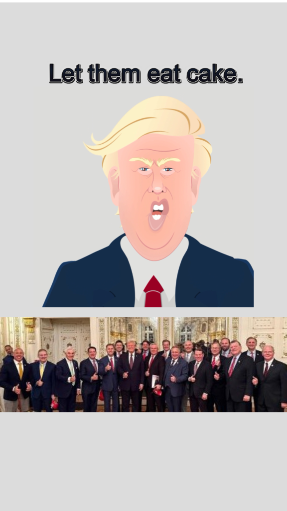 The whole thrust of the 2nd part of the video went into the “Let them eat cake” metaphor, which proved to be spot on as Trump was ready to go all the way to the Supreme Court to retain the right to withhold SNAP benefits to poor families. The Democrats caving on the shutdown ended this fiasco but imagine the President going all the way to the Supreme Court to cause more pain for poor families and children to go hungry, thereby allowing him to blame Democrats, even though the money is there and required by law to be spent on SNAP benefits.