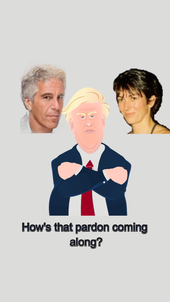 The ghost of Epstein and Ghislaine Maxwell taunt Trump. Epstein about Trump’s attempt to strongarm (of all people) Lauren Boebert to not sign the petition.  The latest ridiculous thing with Maxwell was that she wanted to be with a puppy in prison.