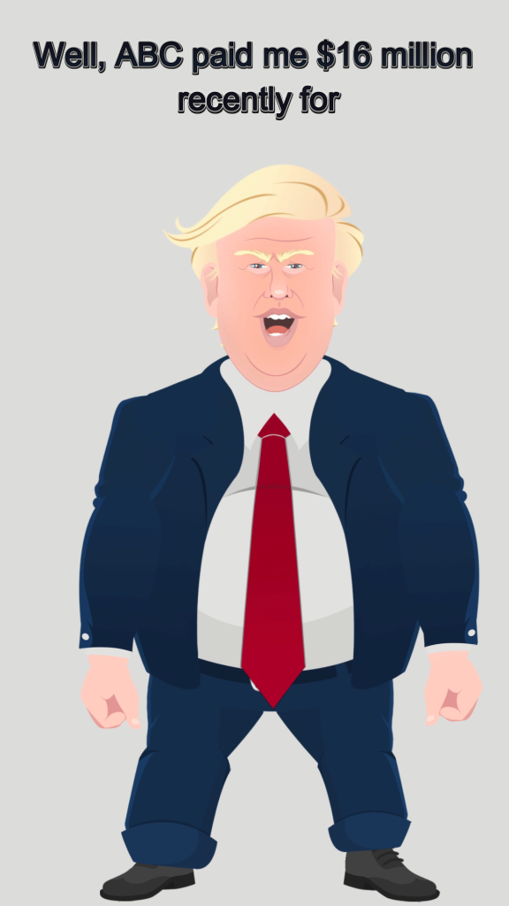 The 2nd part of this first video was – let’s take one of his famous truth social posts and animate Trump getting all worked up. Part of this was testing out more capabilities of the animation tool. In future animations, I’ve learned to make the motions not so rough and chaotic.