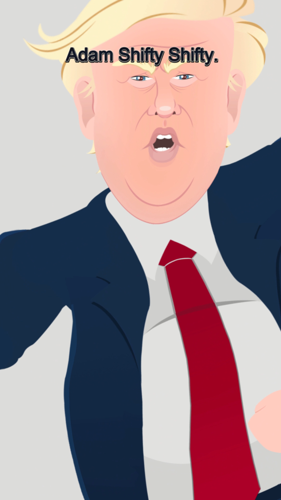 My first try was to do Trump – in his own words – with some goofy voice and a series of expressions.