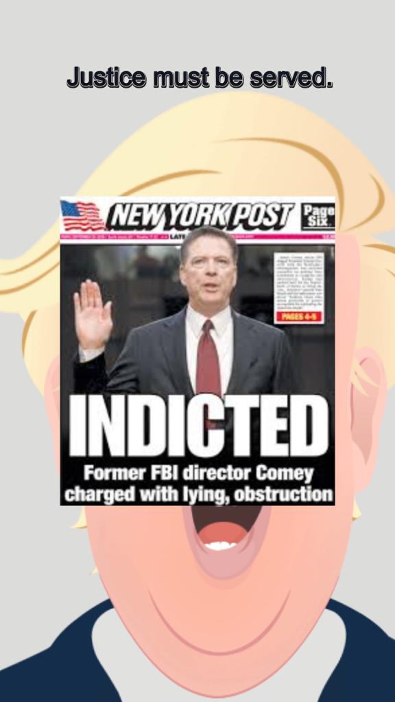 It fell into place that there would be a headline after Trump’s rant, and of course indicting Comey happened just this way after Trump’s truth social post. I came up with idea of putting together the breaking news sound with a newspaper headline. It’s kind of silly that it’s a newspaper that carries the last bit since we’re in such a new digital world. But this is a pattern I’ve used for all of my shorts now.